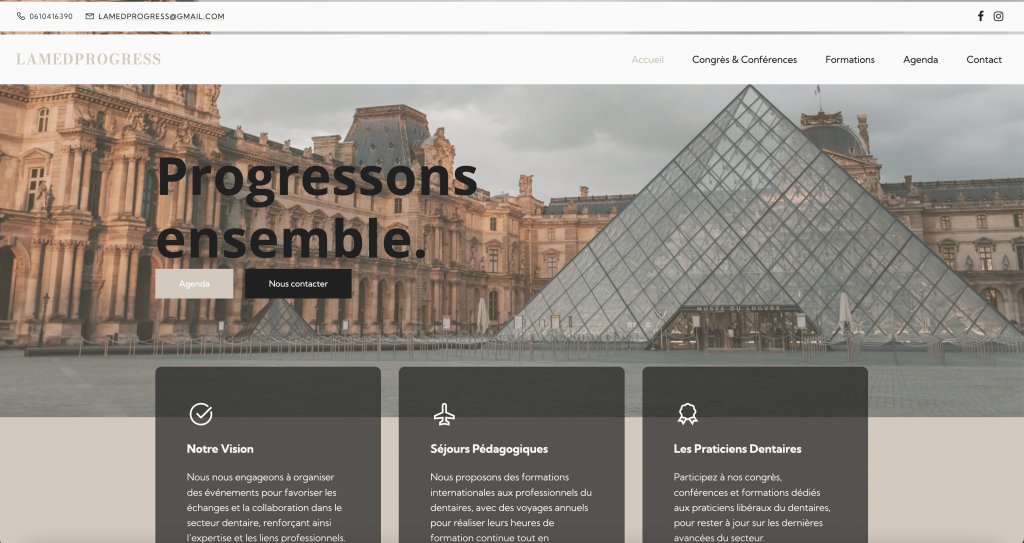 Nous avons conçu un site élégant qui valorise l’expertise et les formations proposées dans le domaine médical. La charte graphique a été minutieusement appliquée pour incarner l’identité et les valeurs de l’entreprise, assurant une image professionnelle et cohérente. Ce site intègre également un système de réservation et de paiement en ligne, facilitant l’accès aux formations pour les professionnels.
