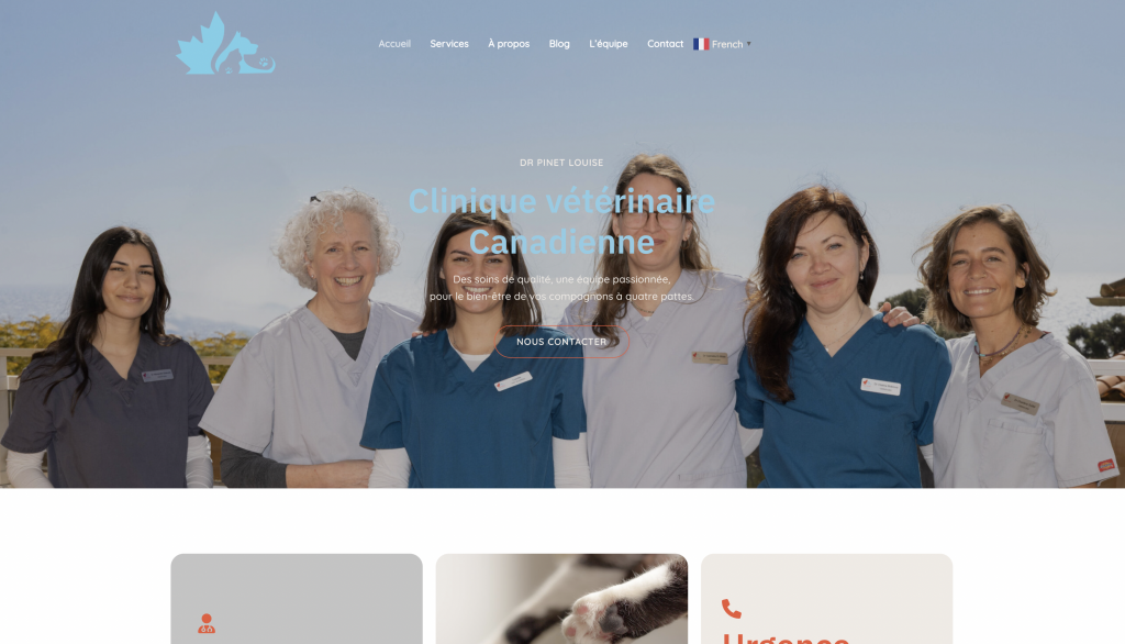 Nous avons conçu un site vitrine moderne qui valorise l’expertise, la bienveillance et la qualité des soins proposés par la clinique vétérinaire. Ce site permet de présenter clairement les services médicaux, chirurgicaux et de soins, tout en facilitant la prise de contact. Pensé pour inspirer confiance, il aide la clinique à renforcer sa présence locale et à attirer de nouveaux propriétaires d’animaux à la recherche d’un accompagnement professionnel et humain.